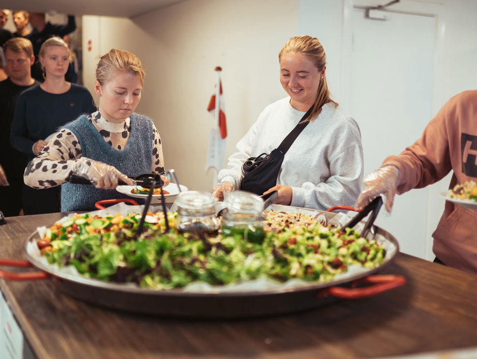 I spisesalen bliver I forkælet med højskolens gode, alsidige og sunde kost. Hér er der altid gang i snakken og smil på læben.