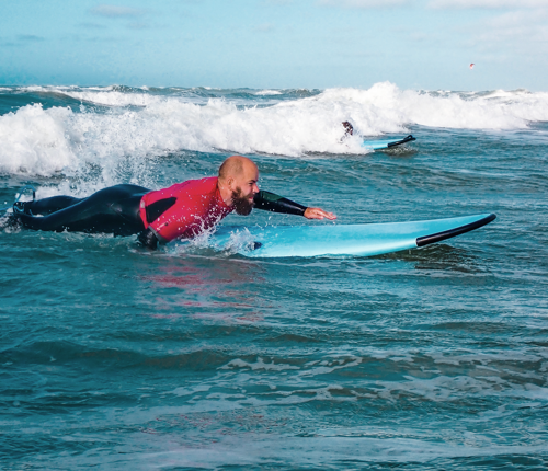 Surfing giver det vildeste rush og en fantastisk livsglæde. I surfing undervisningen nyder vi hinandens selskab, mærker adrenalinen pumpe og oplever roen i naturen. Vi eksperimenterer og leger på vandet, og får nogle gode oplevelser sammen.