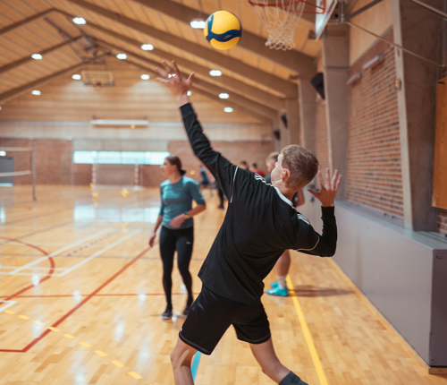 Volleyball er intensitet, teamwork og spilleglæde i én samlet pakke. Bolden flyver hurtigt over nettet, og du skal være klar på både serv, smash og samarbejde – uanset niveau. I volley undervisningen handler det ikke kun om teknik, men også om at læse spillet og være en del af et hold, hvor alle bidrager til energien og stemningen i hallen.