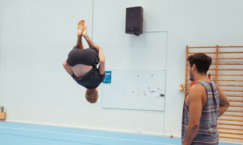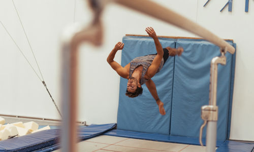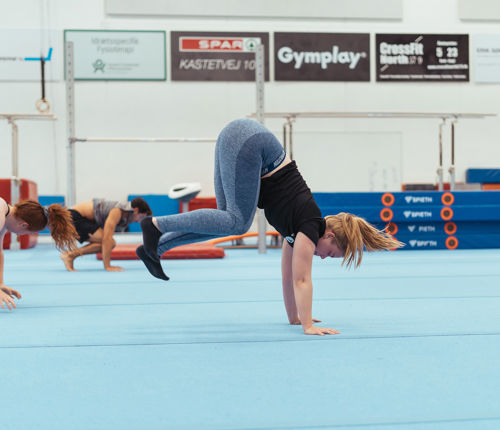 Springgymnastik er kraft, kontrol og luft under fødderne! Det er for dig, der elsker fart over feltet, og som ikke er bange for at give den fuld gas. I springundervisningen øver vi saltoer, forlæns- og baglæns springserier, akrobatik og modtageteknik, mens vi leger og hygger os i springuniverset.