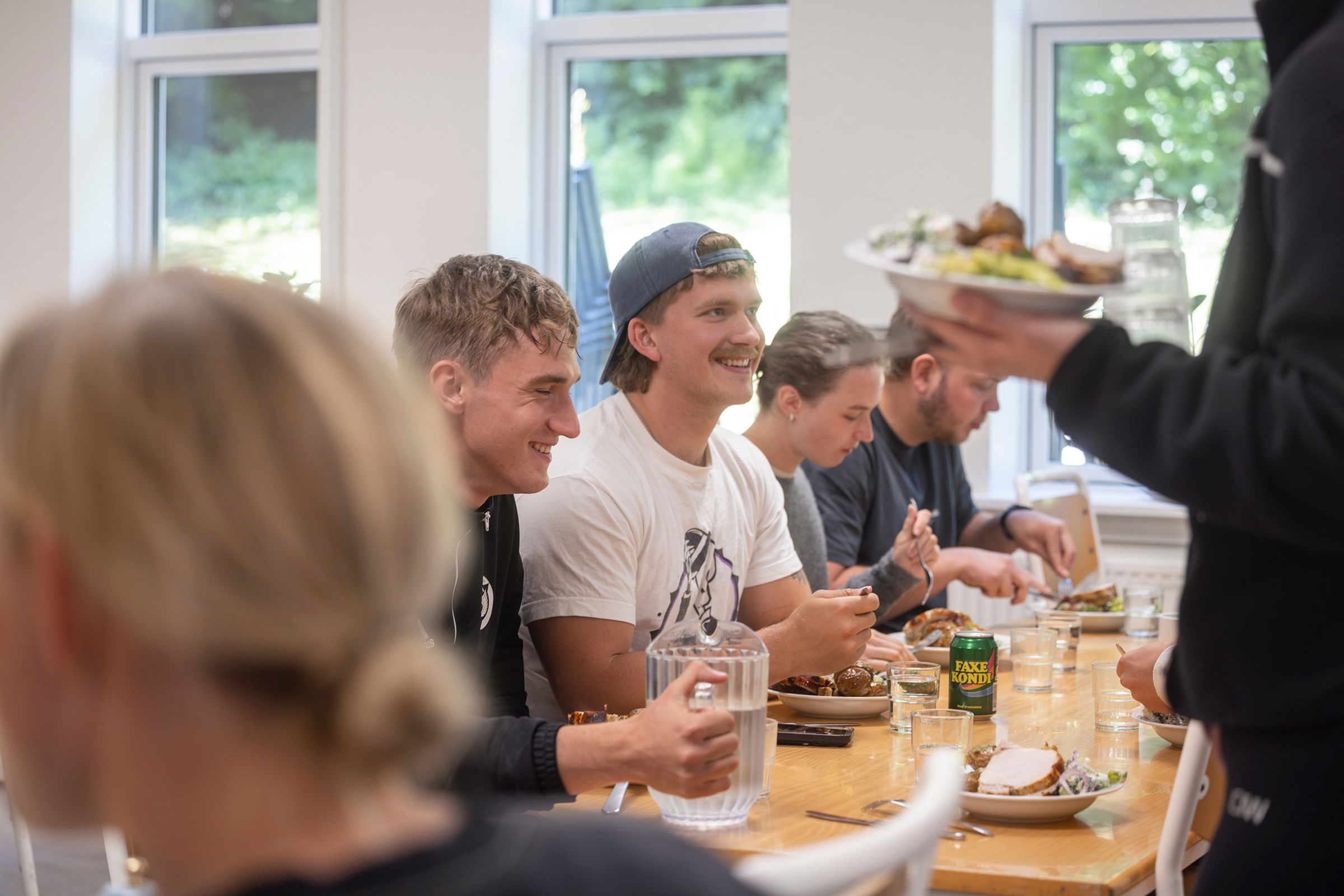 En af fordelene ved at gå på højskole er, at du får alle måltider serveret. Vi serverer god, nærende og velsmagende kost, som giver dig energi til de daglige aktiviteter på højskolen. Men maden er også et socialt samlingspunkt for os på højskolen - en fælles tid hvor vi kan nyde et lækkert måltid sammen, give beskeder og udveksle historier.