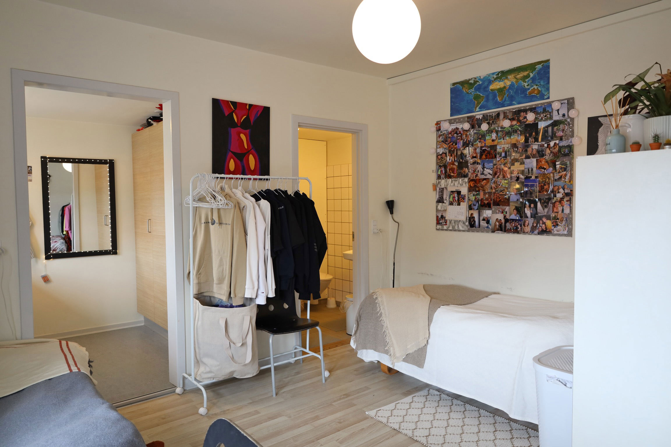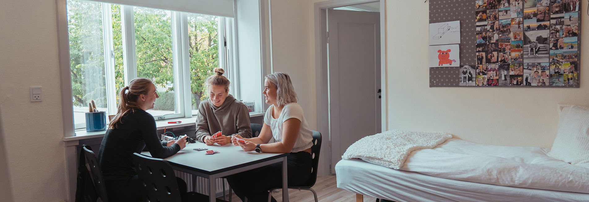 Som elev på Aalborg Sportshøjskole bor du i en lejlighed sammen med 1-3 roomies under dit højskoleophold. Lejlighederne er mellem 35 og 50 kvadratmeter store og består af en entre, et stort værelse, et toilet med bad og et tekøkken med køleskab og vask. Der er senge, skabe, reoler, opslagstavler og et bord med stole i lejligheden.